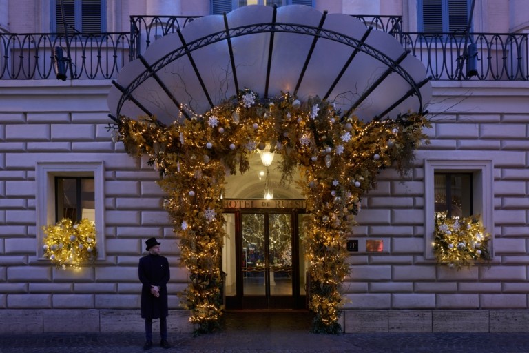 Την σπάνια γοητεία της Αιώνιας Πόλης αντανακλά κάθε γωνιά του Ηοtel de Russie, στην Πιάτσα ντελ Πόπολο. Τα Χριστούγεννα, το αγαπημένο ξενοδοχείο των VIPs -άλλοτε καταφύγιο του Πικάσο και του Κοκτό- ξεχωρίζει για την εκλεπτυσμένη διακόσμηση του, ενώ ο περίφημος κήπος του με τα κλιμακωτά επίπεδα όλο φοίνικες, τριανταφυλλιές, αγάλματα και περίτεχνες κρήνες ζωντανεύει με φώτα και μαγεία για την τέλεια χριστουγεννιάτικη εμπειρία. O καλλιτέχνης Marco Nereo Rotelli σχεδίασε ένα αστραφτερό μονοπάτι φωτισμού, τα δέντρα εκπέμπουν χρώμα αλληλεπιδρώντας με τη θερμότητα της ανθρώπινης επαφής και στίχοι σύγχρονων ποιητών προβάλλονται πάνω στo φύλλωμα.