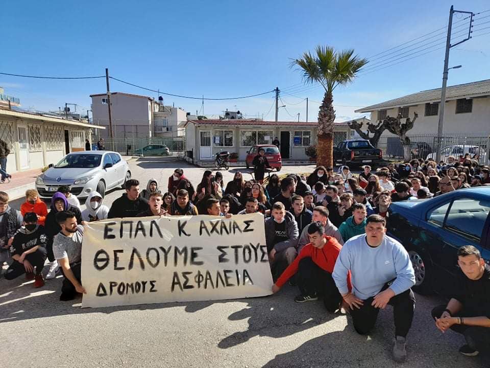Με αφορμή τον θάνατο της συμμαθήτριάς τους Ελένης Βεσκούκη, οι μαθητές της Κ. Αχαϊας έκαναν κινητοποίηση το πρωί και απέκλεισαν την πατρών Πυργου συμβολικά. Φώναζαν δυνατά ΕΛΕΝΗ ΖΕΙΣ. Το κορίτσι είχε βρει τον θάνατο πριν μερικές ημέρες όταν το ΙΧ που οδηγούσε η μητέρα της επιχείρησε να στρίψει προς Ανω Αχαϊα και παρασύρθηκε από φορτηγό. Τα φανάρια δεν λειτουργούσαν.