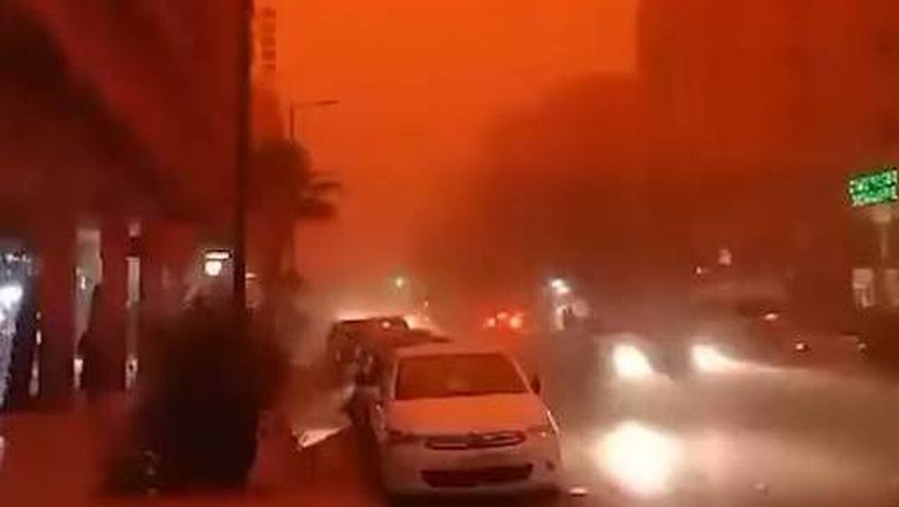 Ο ουρανός έχει μετατραπεί σε χρώμα βαθύ πορτοκαλί, από την άμμο της ερήμου που μετέφεραν άνεμοι έντασης πάνω από 85 χιλιόμετρα την ώρα.