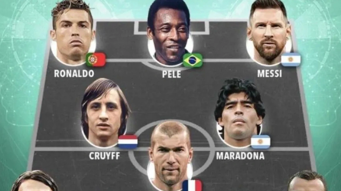 Οι τρεις «μέσοι» είναι οι, Γιόχαν Κρόιφ, Ζινεντίν Ζιντάν και Ντιέγκο Αρμάντο Μαραντόνα, ενώ στην επίθεση εκατέρωθεν του Πελέ είναι οι Λιονέλ Μέσι και Κριστιάνο Ρονάλντο.