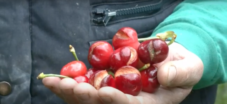 Κεράσια πάνω στα δέντρα χτυπημένα από τη βροχή και το χαλάζι. Αυτή είναι η εικόνα που αντικρίζει κανείς μετά την κακοκαιρία των τελευταίων ημερών, η οποία προκάλεσε ολοκληρωτική καταστροφή στους καρπούς, στην περιοχή της Ημαθίας.