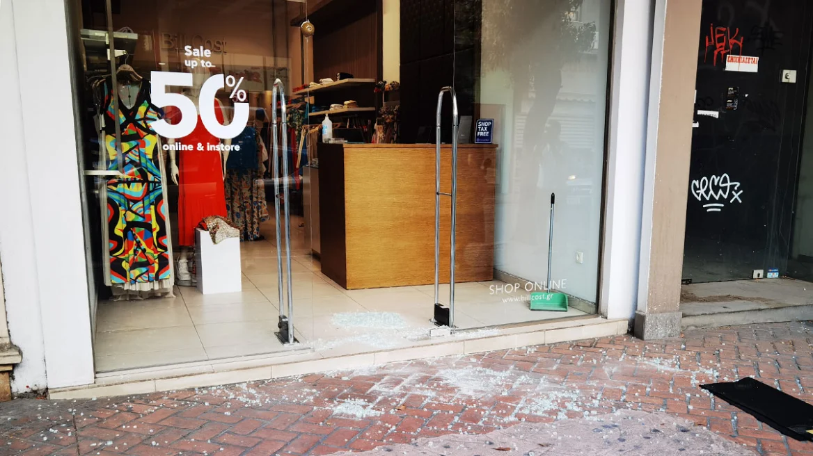 Ήταν λίγο πριν από τις 5 όταν ένα ή περισσότερα άτομα άρχισαν να σπάνε τις βιτρίνες σε πέντε καταστήματα επί της λεωφόρου Βουλιαγμένης.
