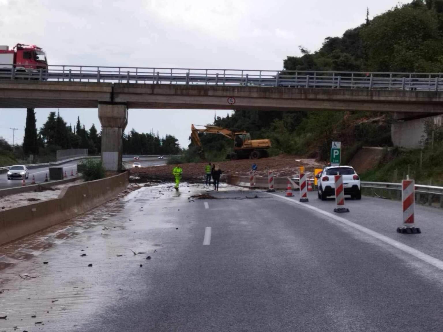 Δείτε φωτό από την εθνική οδό που έκλεισε λόγω κατολίσθησης