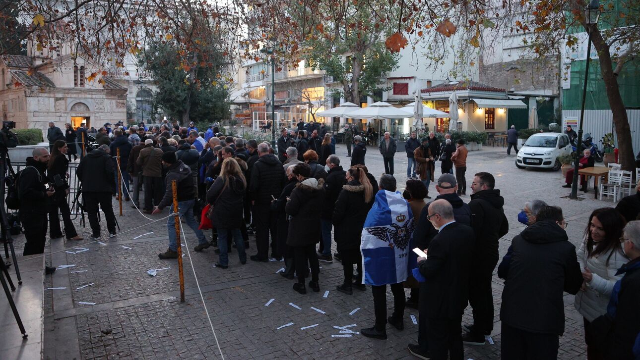 Ήδη από νωρίς έξω από το παρεκκλήσι του Αγίου Ελευθερίου έχει συγκεντρωθεί κόσμος για να πει το τελευταίο «αντίο» στον τέως βασιλιά της Ελλάδας.