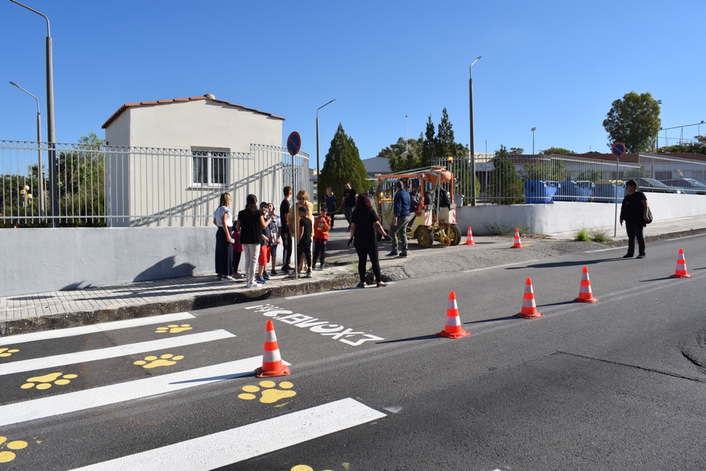 Οι διαγραμμίσεις διαμορφώθηκαν με μοτίβα ειδικά σχεδιασμένα για τα παιδιά, ενώ προειδοποιούν τους οδηγούς για τη διέλευσή τους μπροστά από τα σχολεία.
