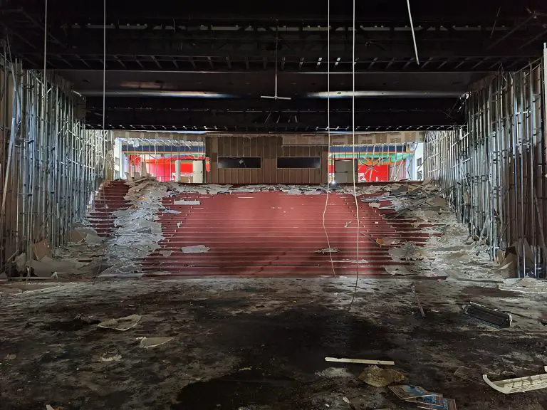 Ο εσωτερικός χώρος του Εργοστασίου Τέχνης παραμένει λεηλατημένος , με όλα γύρω του συντρίμμια από όσους πέρασαν από εκεί μέσα, γνωστούς και αγνώστους. Απομένει να δούμε πότε θα επαναδημοπρατηθεί το έργο αφού η πρώτη του σύμβαση διαλύθηκε και να ξεκινήσουν οι εργασίες με την ελπίδα ότι το θέατρο και ο χώρος αυτός θα λειτουργήσει κάποια στιγμή ξανά. (Οι φωτογραφίες είναι από τον Χρίστο Δισκοθέτη Φανοποιό).
