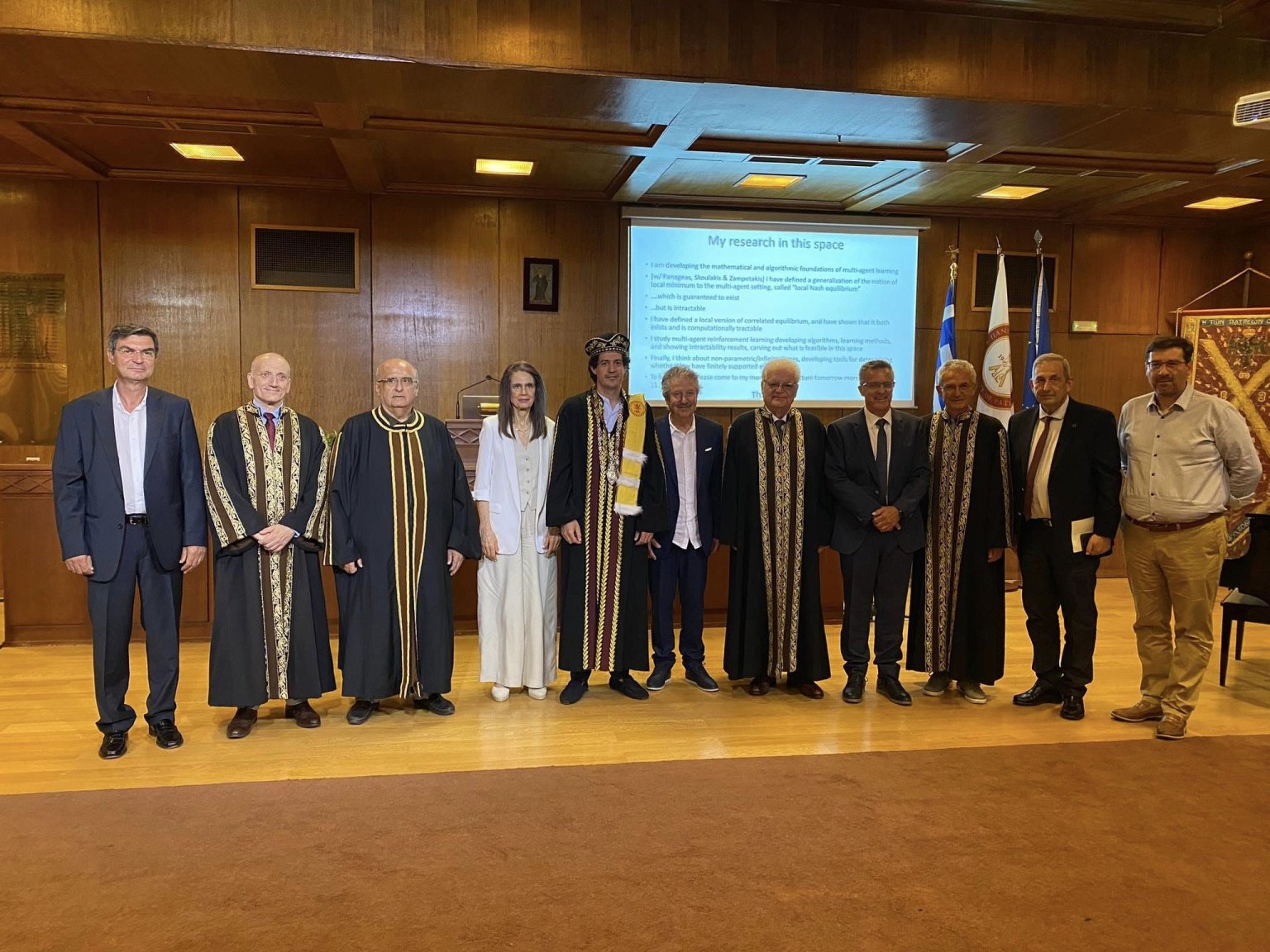 Η εκδήλωση της επιτιμοποίησης ολοκληρώθηκε με την ομιλία του τιμώμενου με τίτλο: «Θεωρία Παιγνίων και Τεχνητή Νοημοσύνη (Game Theory and Machine Learning)»