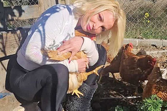 Η ίδια, μάλιστα, περνά καθημερινά αρκετή ώρα στο κοτέτσι, φροντίζοντας τις κότες της που, όπως βλέπετε και στις φωτογραφίες που δημοσιεύουμε, αφήνονται στα χάδια της. Ολα τα πλάσματα αγάπη θέλουν…