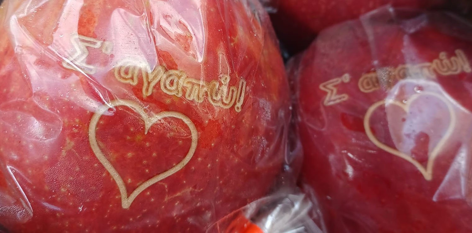 Την μεγάλη ανατροπή στα δώρα του έρωτα έρχεται να κάνει ο πρόεδρος του Συλλόγου Οπωροπωλών Πύργου, Μιχάλης Αποστολόπουλος στο δικό του κατάστημα, αφού από χθες ζουμερά κόκκινα μήλα με χαραγμένα μηνύματα αγάπης διατίθενται για τους απανταχού ερωτευμένους που προσέχουν την διατροφή τους και αποφεύγουν την ζάχαρη και τις παραδοσιακές σοκολατένιες καρδούλες.