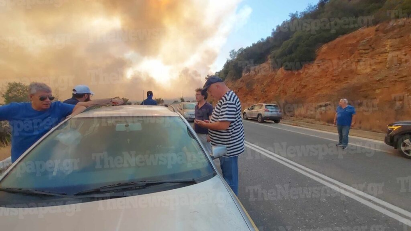 Mέσα σε λίγα λεπτά, έφυγαν οι κάτοικοι από τον Άγιο Γεώργιο Κυνηγών, τη Χρυσή Ακτή, τον Μάραθο και την Κριθαριά καθώς έλαβαν μήνυμα από το 112 να εκκενώσουν τις περιοχές τους