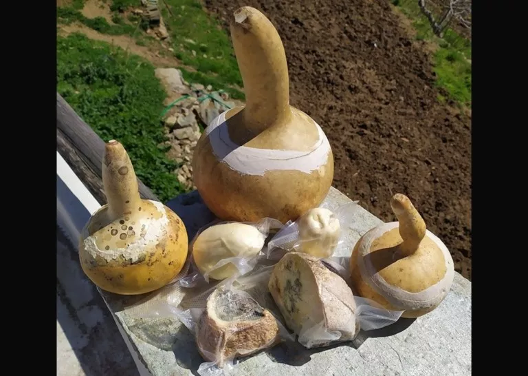 Το τυρί αυτό φτιάχνεται σε δυο στάδια, για να καταφέρουν να πετύχουν τις ζυμώσεις που χρειάζονται ώστε να αποκτήσει στο τέλος αυτήν την ελαφρά πικάντικη γεύση του αλλά και το χαρακτηριστικό του μπλε χρώμα. Απαραίτητη προϋπόθεση προτού ξεκινήσουν όλα, είναι να βρουν τις νεροκολοκύθες, να τις αδειάσουν και να τις στεγνώσουν. Στο πρώτο στάδιο ρίχνουν μέσα το τυρόγαλα, ώστε να δημιουργηθεί ένα «πέτσωμα» γύρω από τη νεροκολοκύθα. Αυτό το αλλάζουν 2-3 φορές μέσα σε 24 ώρες ώστε να σταθεροποιηθεί και να μπορέσει να δημιουργηθεί ο μύκητας που χρειάζεται για να πετύχει το τυρί. Το αφήνουν εκεί από μια έως και πέντε μέρες.