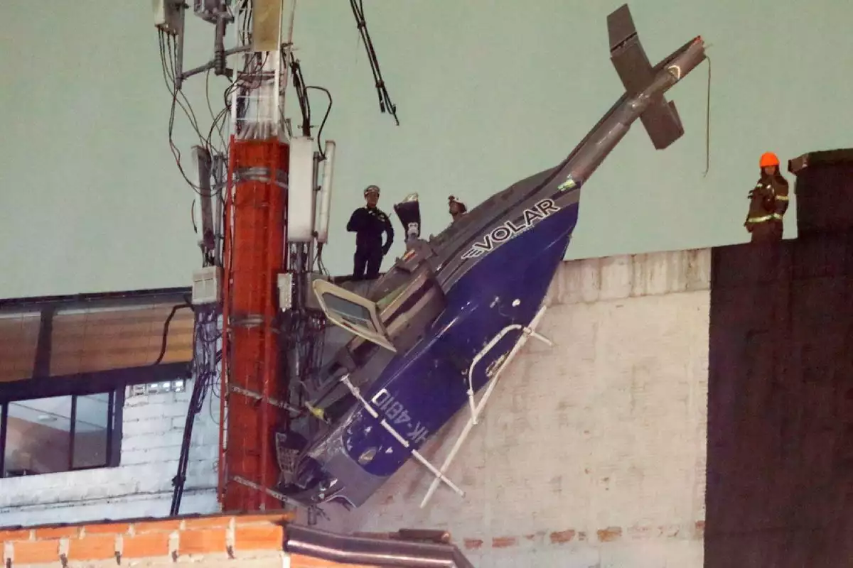 Το ελικόπτερο – που επρόκειτο να παραμείνει στον αέρα μόνο για 12 λεπτά για να μεταφέρει τους επιβάτες σε εστιατόριο – έχασε τον έλεγχο και συνετρίβη τη Δευτέρα στην πλευρά ενός πολυώροφου κτιρίου στο Μεντεγίν της Κολομβίας .