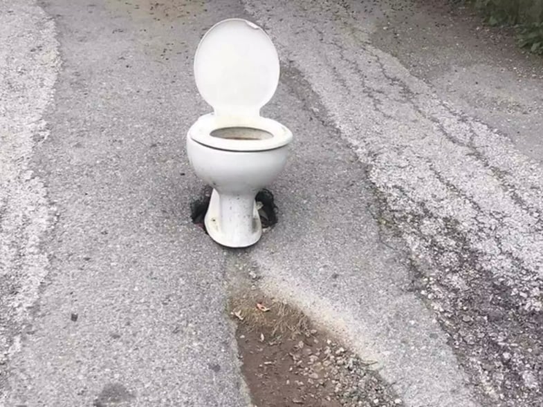 Η λακούβα σε δρόμο στη Λακωνία παρέμενε, παρά τις διαμαρτυρίες κατοίκων της περιοχής και έτσι κάποιοι αποφάσισαν να πάρουν την κατάσταση στα χέρια τους. Για την ακρίβεια μια λεκάνη τουαλέτας, την οποία τοποθέτησαν στο επίμαχο σημείο του δρόμου για να καλύψουν όπως – όπως το πρόβλημα. Έστω και έτσι πάντως, έχουν μειώσει τον κίνδυνο, αφού οι διερχόμενοι οδηγοί βλέπουν την εικόνα και αναγκάζονται να κόψουν ταχύτητα.