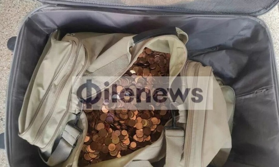 Ωστόσο, δεν παρέδωσε ούτε επιταγή, ούτε μετρητά, αλλά μια βαλίτσα βάρους 50 κιλών, που περιείχε 15.500 νομίσματα των 1, 2, 5 και 10 σεντ.