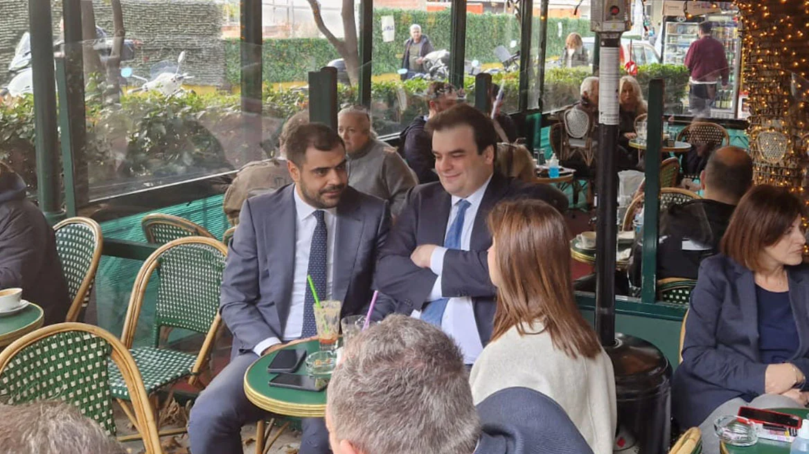 Για καφέ στο Κολωνάκι με φίλους και συνεργάτες βρέθηκαν ο υφυπουργός παρά τω πρωθυπουργό και κυβερνητικός εκπρόσωπος, Παύλος Μαρινάκης και ο υπουργός Παιδείας, Κυριάκος Πιερρακάκης μετά τη δοξολογία στον Άγιο Διονύσιο.