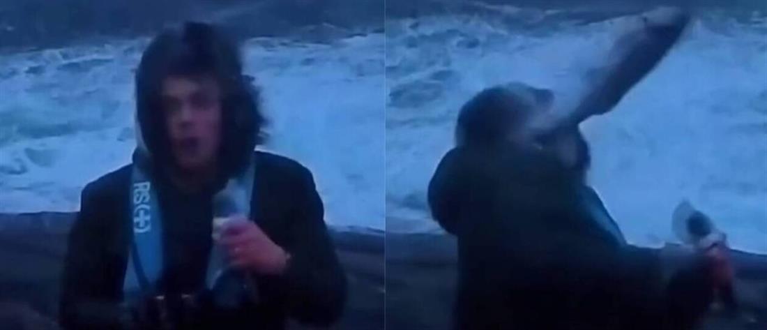 Ο μετεωρολόγος μετά από λίγο ξέσπασε σε γέλια και σηκώθηκε, πριν σκάσει κι άλλο κύμα.