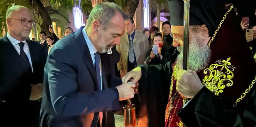 Τις ευχές του προς το σύνολο των Αχαιών, καθώς και την τιμή που του έγινε να αποτελεί τον εκπρόσωπο της κυβέρνησης για δεύτερη συνεχή χρονιά στην τελετή Αφής του Αγίου Φωτός στον Πανίερο Ναό της Αναστάσεως στα Ιεροσόλυμα, παραλαμβάνοντας την «άσβεστο φλόγα» της Ορθοδοξίας από τα χέρια του Πατριάρχη Ιεροσολύμων, μετέφερε ο Υφυπουργός Εξωτερικών και βουλευτής Αχαίας, Ανδρέας Κατσανιώτης, παραδίδοντας το Άγιο Φως, το βράδυ του Μ. Σαββάτου στις Μητροπόλεις Αιγιάλειας και Καλαβρύτων και Πατρών.
