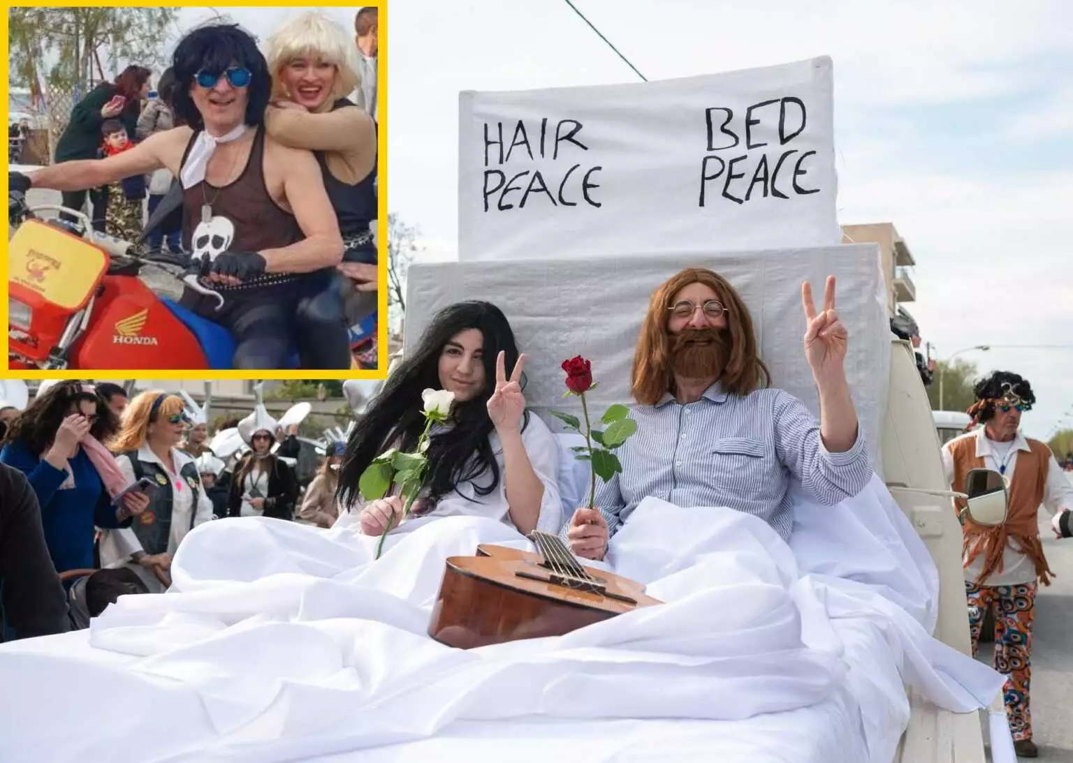 Όπως βλέπετε στη φωτογραφία από το korinthostv, ο δημαρχος Σικυωνίων Σπύρος Σταματόπουλος, μεταμορφώθηκε με μεγάλη επιτυχία σε Τζον Λένον, αναπαριστώντας τη θρυλική σκηνή με το κρεβάτι.