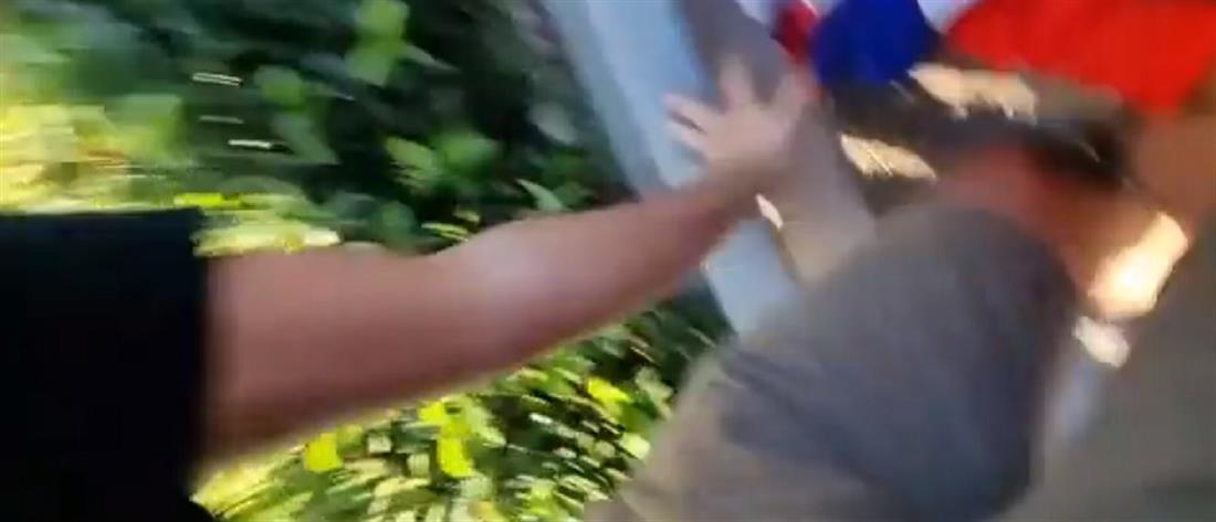 Όπως φαίνεται και στο βίντεο, που τραβούσε ο ίδιος, οι οπαδοί τον έσπρωξαν, του άρπαξαν το κινητό κι άλλα πράγματα και η μετάδοση σταμάτησε.