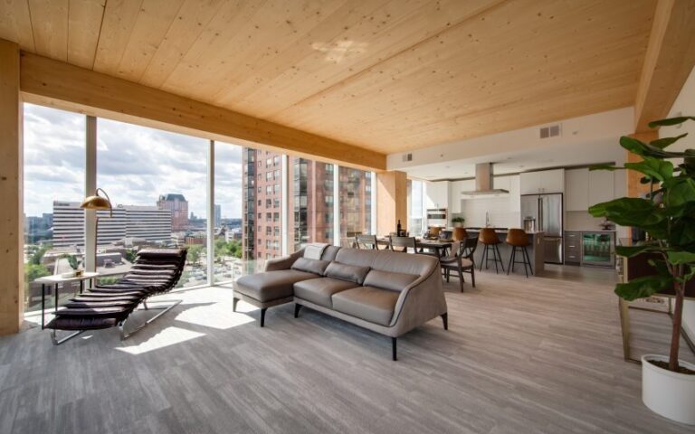 Ο ουρανοξύστης σχεδιάστηκε από την Korb + Associates Architects και εγκαινιάστηκε τον Ιούλιο του 2022. Η βάση, ο ανελκυστήρας και το φρεάτιο του κλιμακοστασίου έχουν φτιαχτεί από τσιμέντο, ενώ η υπόλοιπη δομή του είναι κατασκευασμένη από ξύλο.
