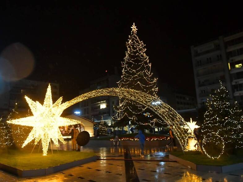 Άναψε ο γιορτινός στολισμός στην πλατεία Γεωργίου στο κέντρο της Πάτρας.