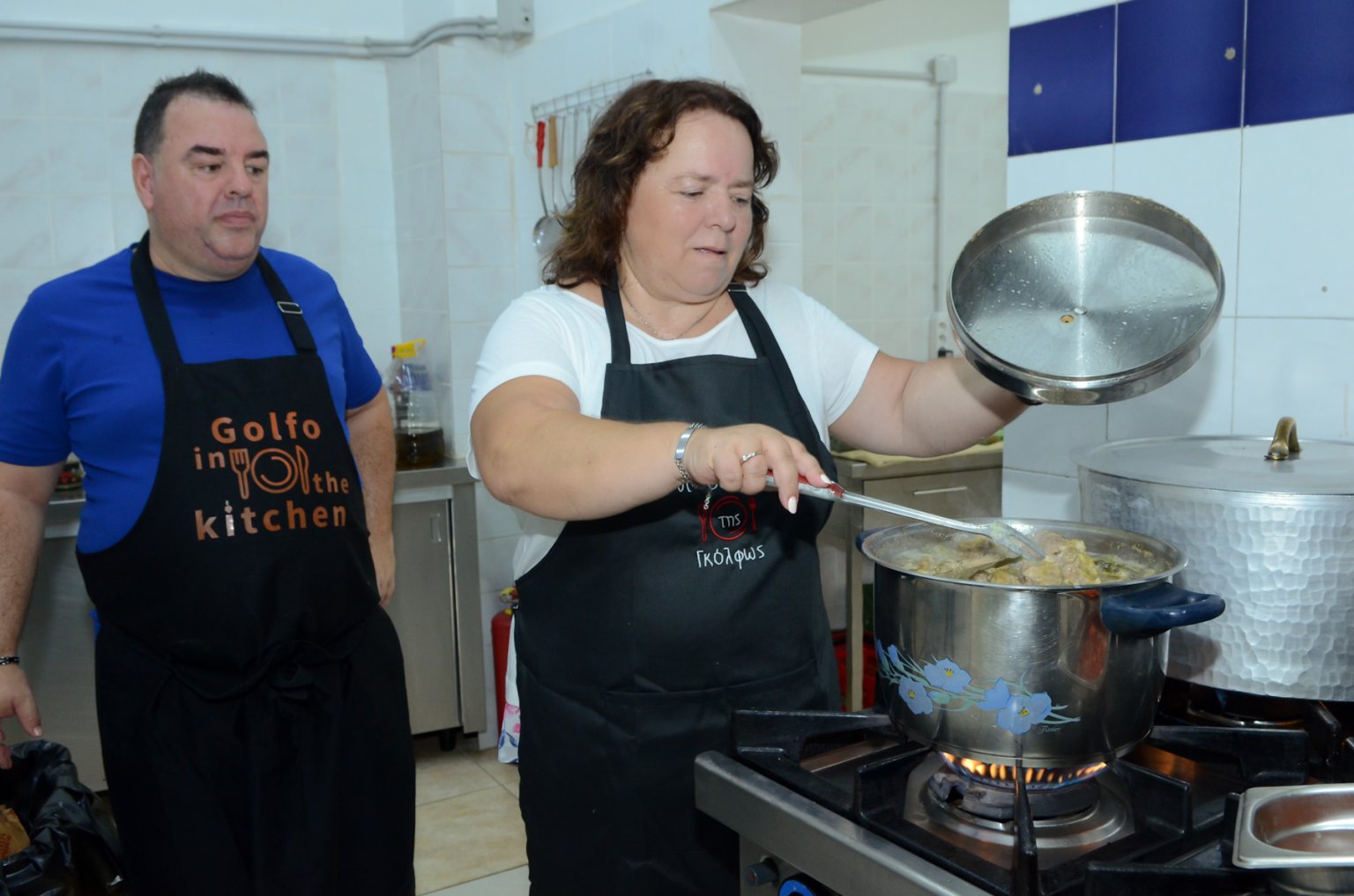 Η Πρεβεζάνα μαγείρισσα Γκόλφω Νικολού και ο Πάνος Λεβέντης μαγείρεψαν στην Κουζίνα Αγάπης με περίσσεια αγάπη για τα παιδιά του Φωτεινού Αστεριού και τις οικογένειές τους.
