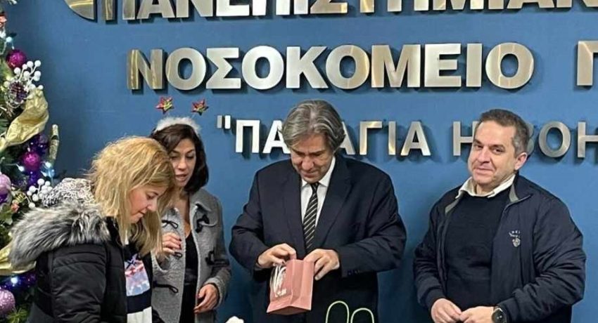 Μάλιστα αναφέρει σχετικά: «Σήμερα 22/12/2023 το σχολείο μας – με αντιπροσωπεία μαθητών του Ομίλου ‘Μην πετάτε … δημιουργείτε‘ (υπεύθυνοι εκπαιδευτικοί: κ. Κτενά Χριστίνα και κ. Καρούμπαλη Ευγενία) επισκεφθήκαμε το Πανεπιστημιακό Γενικό Νοσοκομείο Πατρών ‘Παναγία η Βοήθεια‘. Η υποδοχή του Διοικητή του Νοσοκομείου κ. Δημητρίου Μπάκου ήταν μοναδική και πλημμυρισμένη από αγάπη προς τα παιδιά και τον άνθρωπο.