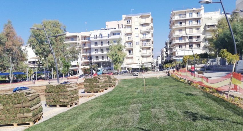 Σε φάση ολοκλήρωσης βρισκεται πλέον η νέα πλατεία στην περιοχή του Αγίου Αλεξίου και σήμερα ξεκίνησε η τοποθέτηση του χλοοτάπητα.