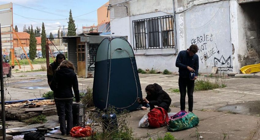 Πριν από μερικές μέρες η ομάδα No Name Kitchen ξεκίνησε να βάζει ντους με ζεστό νερό στους προαύλιους χώρους για τους άστεγους μετανάστες που ζουν στο πρώην εργοστάσιο του Λαδόπουλου.