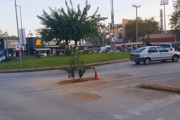 Παρεμβαίνουν εκεί οι δημότες. Τα παράδειγμα στον κόμβο του ΤΕΙ στο Μπεγουλάκι είναι χαρακτηριστικό και το εντόπισε ο χρήστης των social media Λέας Λεάκος, βγάζοντας την φωτογραφία και αναφέροντας τα εξής: