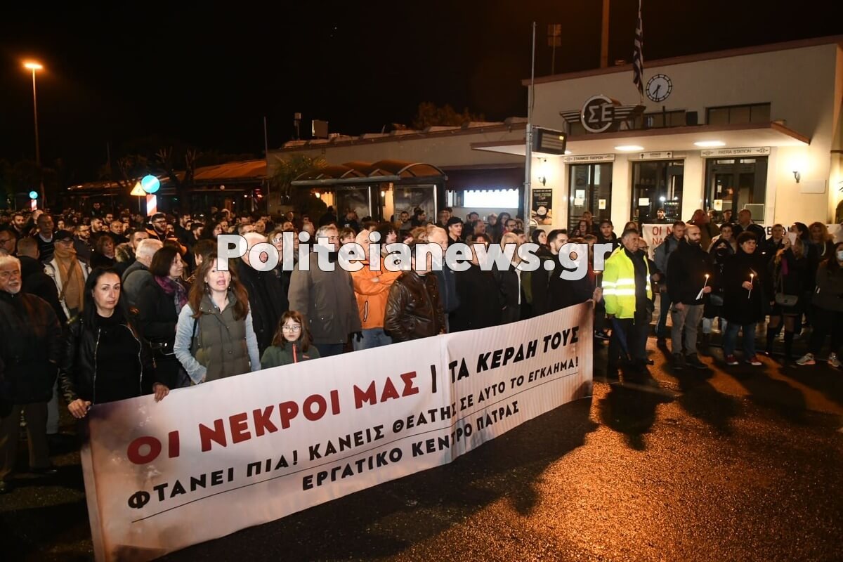 Πάνω από 300 άτομα συμμετέχουν στην πορεία διαμαρτυρίας που γίνεται στην Πάτρα για την τραγωδία στα Τέμπη.