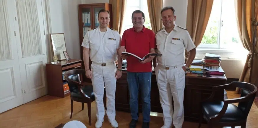 Ο Αντιπλοίαρχος κ. Σαπουνάς, δώρισε στον Δήμαρχο μία πολύ ενδιαφέρουσα έκδοση του Ινστιτούτου Ιστορίας Εμπορικής Ναυτιλίας, η οποία πραγματεύεται την εξέλιξη της ελληνικής εμπορικής ναυτιλίας στο πέρασμα των αιώνων.