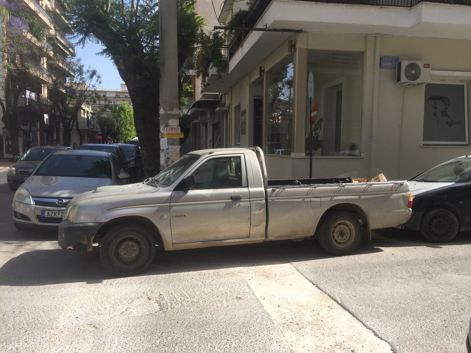 Πίσω απ’ αυτή τη φωτογραφία, υπάρχει ένα μικρό παρασκήνιο. Στο πεζοδρόμιο που έχει μεγαλοπρεπώς αποκλεισθεί απ’ το εικονιζόμενο αγροτικό Ι.Χ., υπάρχει μια μαμά με καροτσάκι που δεν ήθελε να φανεί στη φωτογραφία.
