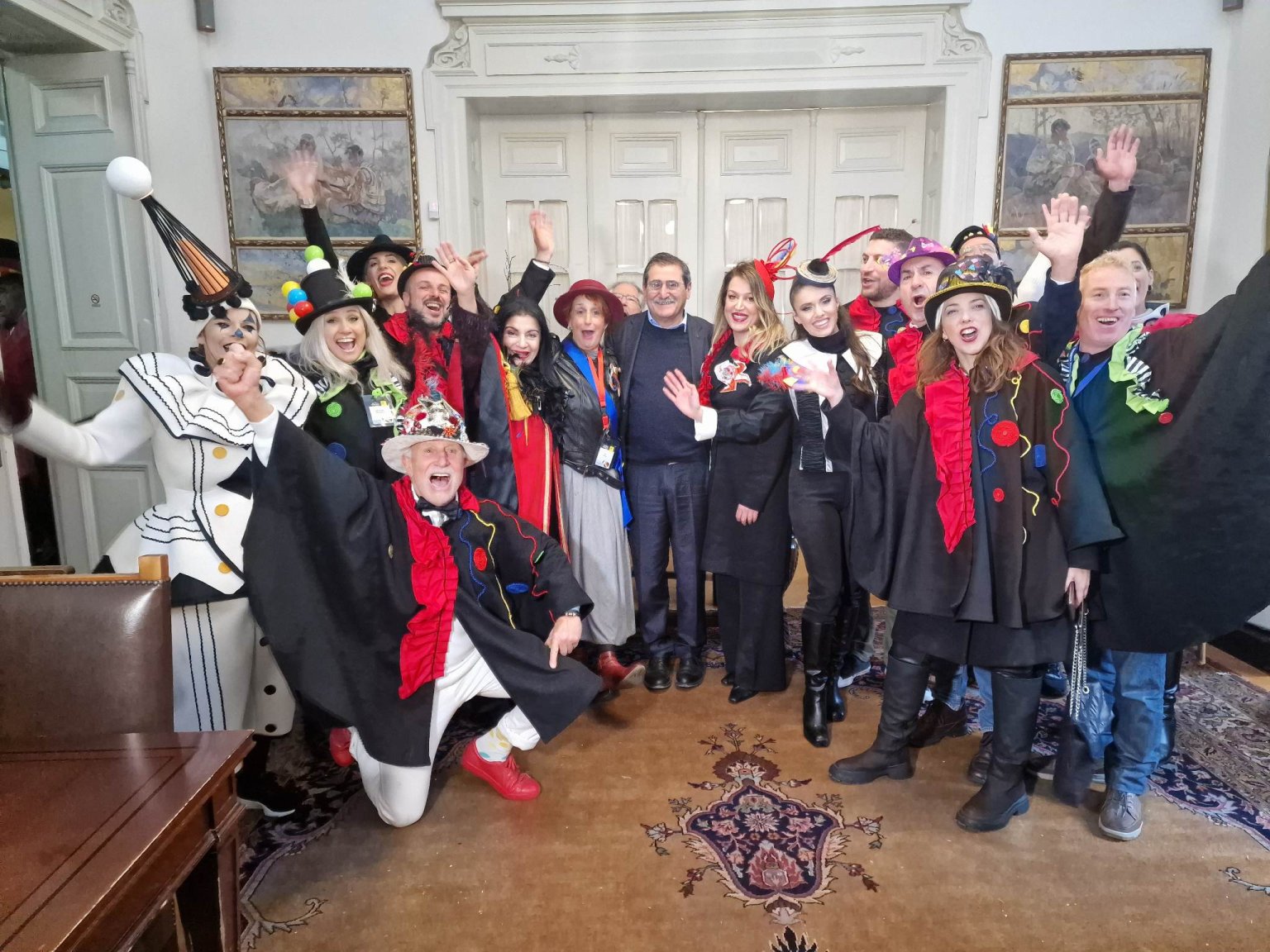Η καρναβαλική πομπή που μετέφερε το λάβαρο του Πατρινού Καρναβαλιού 2023 έφθασε στο Δημαρχείο της Πάτρας όπου την καλωσόρισε ο Δήμαρχος Πατρέων που, υπό τους αποκριάτικους παιανισμούς της Δημοτικής Μουσικής, παρέλαβε το καρναβαλικό λάβαρο από την πρόεδρο της ΚΕΔΗΠ-Καρναβάλι Πάτρας Ήρα Κουρή. Την εκδήλωση σφράγισε το καθιερωμένο έθιμο του σοκολατοπόλεμου προσφέροντας τη δική του γλυκιά πινελιά.