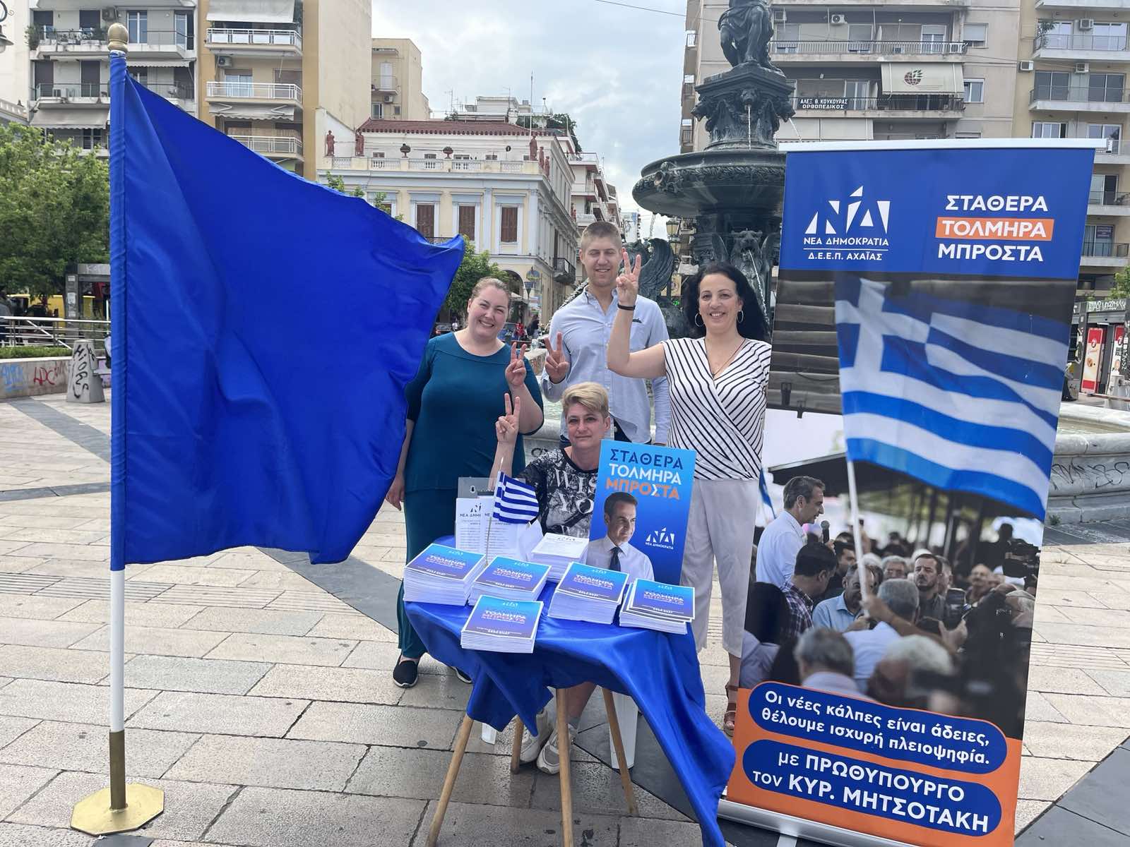 Πάτρα: Εκλογικό κιόσκι της Νέας Δημοκρατίας στην Πλατεία Τριών Συμμάχων