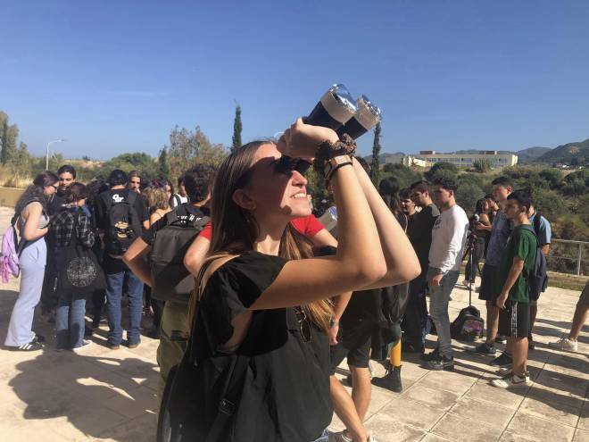 Εκατοντάδες προσήλθαν για να παρατηρήσουν τη μερική έκλειψη ηλίου στην εκδήλωση του Ωρίωνα και της Βιβλιοθήκης του Πανεπιστημίου Πατρών.