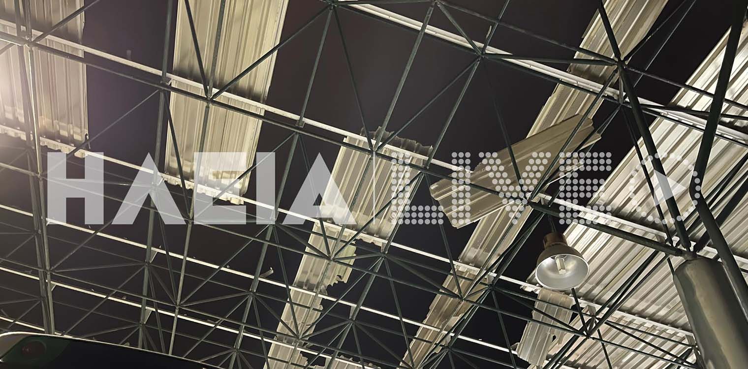 Στο μεγαλύτερο ποσοστό η στέγη από την αποβάθρα του ΚΤΕΛ αποκολλήθηκε και σκόρπισε σε μεγάλη απόσταση με κομμάτια να πέφτουν στην οδό Πατρών και τον αύλειο χώρο του ξενοδοχείου Λέτρινα.