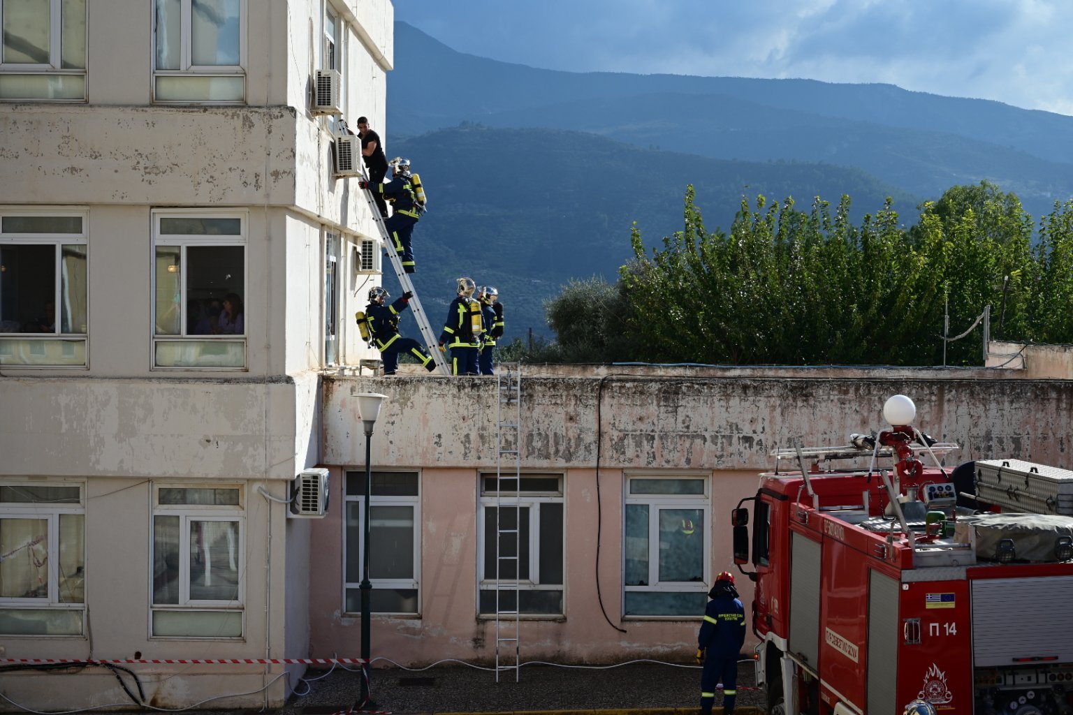 Αυτό ήταν περιληπτικά το σενάριο της άσκησης επιχειρησιακής ετοιμότητας που πραγματοποιήθηκε το πρωί της Πέμπτης στους χώρους του Γενικού Νοσοκομείου Αιγίου με τη συμμετοχή σειράς φορέων εμπλεκόμενων στην Πολιτική Προστασία, με στόχο την ενδυνάμωση της επιχειρησιακής ετοιμότητας και την επαύξηση της αποτελεσματικότητας της συνεργασίας των υπηρεσιών, στην περίπτωση αντιμετώπισης των συνεπειών του σεισμικού φαινομένου. Ειδικότερα, στον όλο σχεδιασμό και στην άσκηση συμμετείχαν: το Γενικό Νοσοκομείο Αιγίου, η Περιφερειακή Πυροσβεστική Δύναμη Δυτικής Ελλάδας, η Πυροσβεστική Υπηρεσία Αιγίου, το Πυροσβεστικό Κλιμάκιο Ακράτας, η 6η ΕΜΑΚ, η Ελληνική Αστυνομία, το ΕΚΑΒ και οι Ένοπλες Δυνάμεις. Αξιοποιήθηκαν έξι οχήματα της Πυροσβεστικής Υπηρεσίας και συνολικά 22 άνδρες, ασθενοφόρα του ΕΚΑΒ και όχημα της ΕΛΑΣ, ενώ τους ρόλους των εγκλωβισμένων υποδύθηκαν εθελοντές και μέλη του προσωπικού του Νοσοκομείου με φροντίδα της διοίκησης. Από πλευράς Πυροσβεστικής Υπηρεσίας το παρών έδωσαν μεταξύ άλλων ο Διοικητής Πυροσβεστικών Υπηρεσιών Αχαΐας πύραρχος κ. Αργύριος Φαλίδας, ο διοικητής της 6ης ΕΜΑΚ αντιπύραρχος κ. Θεόδωρος Φιλιππόπουλος και ο διοικητής της Πυροσβεστικής Υπηρεσίας Αιγίου επιπυραγός κ. Παναγιώτης Μιχαλόπουλος, ενώ την Ομάδα Σχεδιασμού Άσκησης της Πυροσβεστικής αποτέλεσαν ο προϊστάμενος του ΠΚ Ακράτας, επιπυραγός κ. Ανδρέας Ζαφειρόπουλος και οι αξιωματικοί υποπυραγός κ. Ιωάννης Κυριακόπουλος και ανθυποπυραγός κα Ευγενία Κωνσταντινοπούλου.