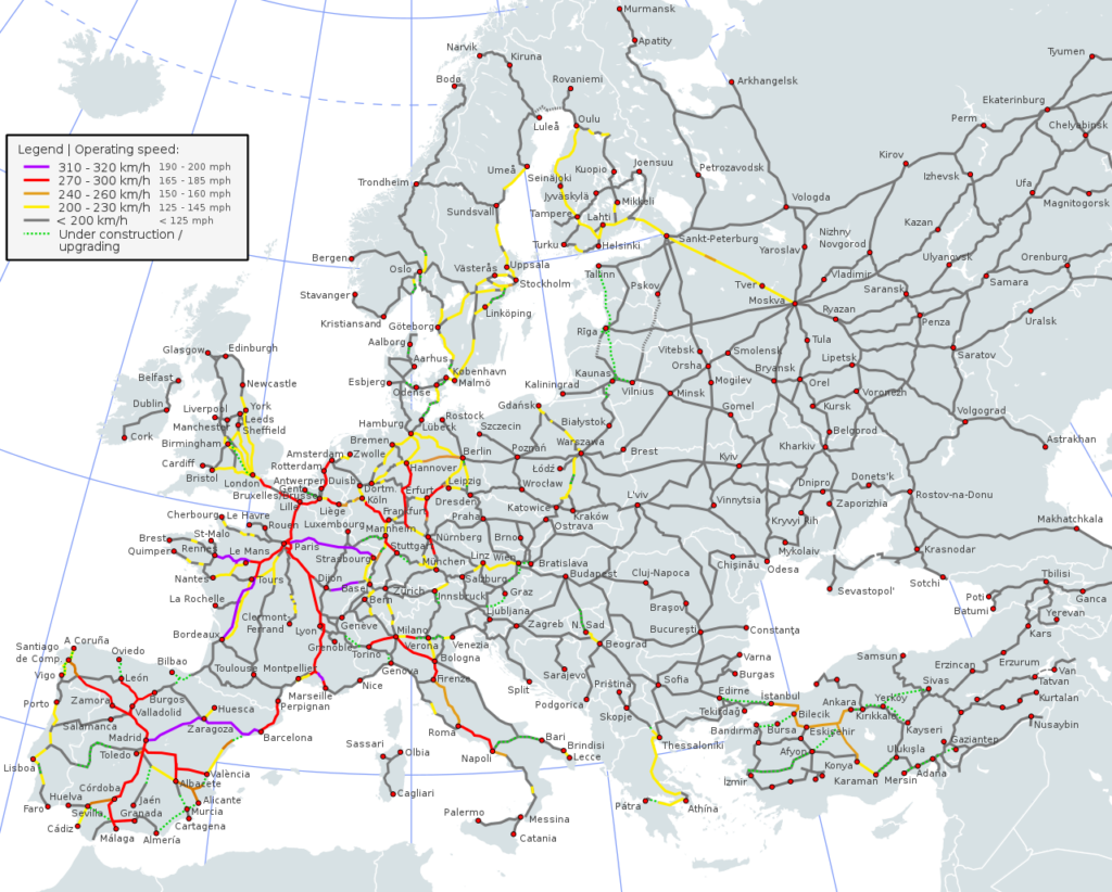 Στον χάρτη που βλέπετε, εμφανίζονται οι κυριότερες σιδηροδρομικές γραμμές στην Ευρώπη.