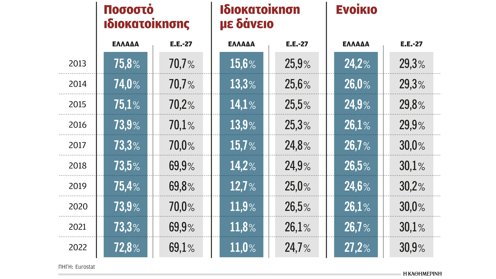 Λιγότεροι Ελληνες έχουν πλέον δικό τους σπίτι