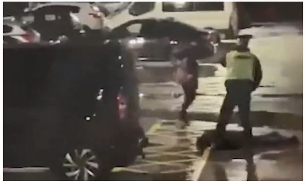 Μια μικρή ομάδα οπαδών φαίνεται να τσακώνεται με αστυνομικούς του Greater Manchester στο χώρο στάθμευσης αυτοκινήτων, ο οποίος είναι σχετικά ήσυχος, όπως δείχνει το βίντεο.