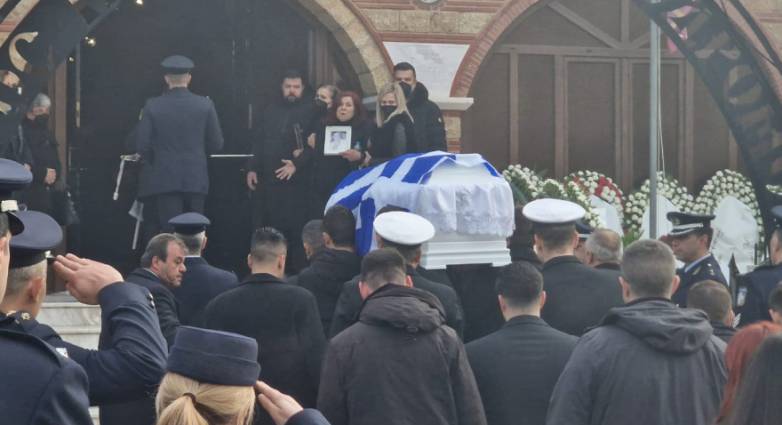Τραγική φιγούρα η μητέρα του αστυνομικού, που απαρηγόρητη κρατάει τη φωτογραφία του γιου της στα χέρια και φωνάζει «γιατί παλικάρι μου, γιατί». Παράλληλα, πλήθος συναδέλφων του φτάνει στην εκκλησία για να του πει το τελευταίο αντίο.