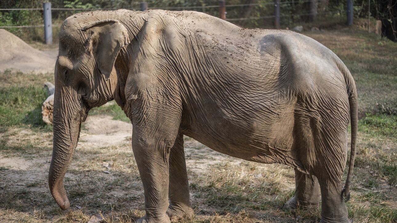Πρόκειται για την 71χρονη πλέον, θηλυκή ελεφαντίνα που ονομάζεται Πάι Λιν (Pai Lin). Η σπονδυλική της στήλη έχει παραμορφωθεί εντελώς από το βάρος τόσων χρόνων.