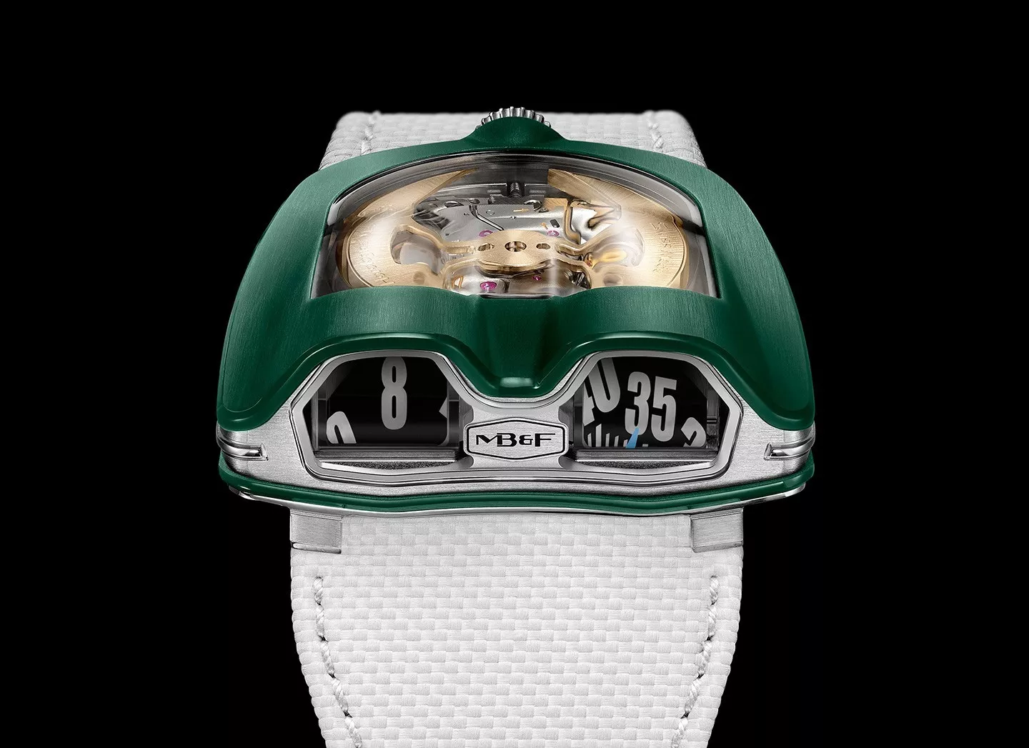 O σχεδιαστικός κώδικας του ρολογιού γνέφει στην αυτοκινητοβιομηχανία, με τις καμπύλες του να φέρνουν στο νου την εμβληματική Porsche 918 Spyder αλλά και το θρυλικό Fiat Abarth 750 Zagato “Double Bubble.”