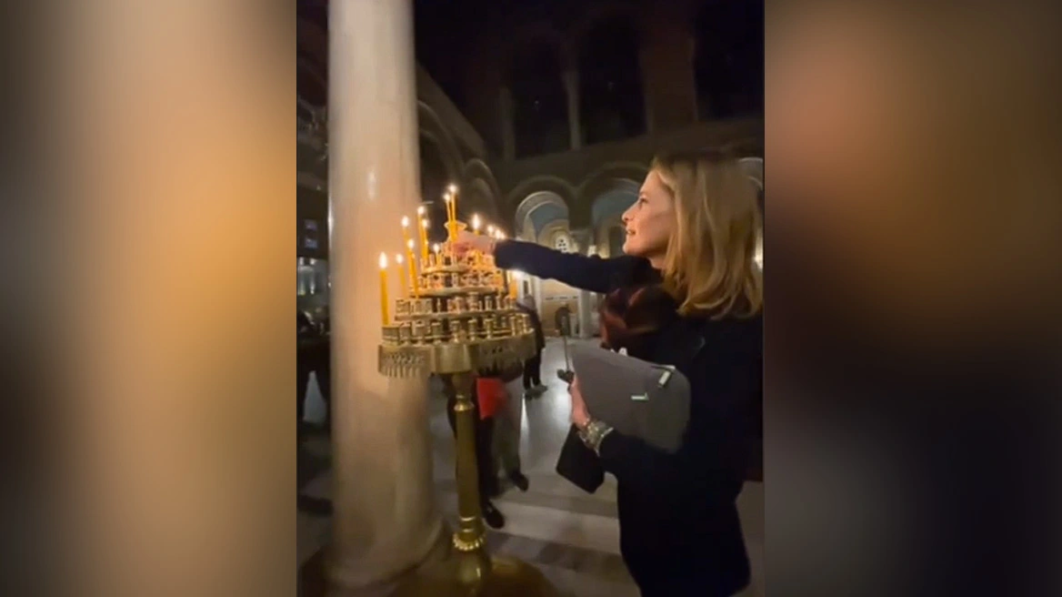 H σύζυγος του γιου του Νικόλαου, επισκέφτηκε τον Καθεδρικό Ναό των Αθηνών και άναψε ένα κερί για να προσευχηθεί.