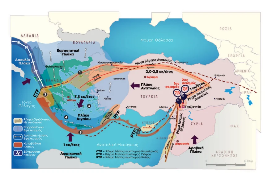 Σύμφωνα με τους επιστήμονες, οι σεισμοί αυτοί έγιναν στα σύνορα Τουρκίας – Συρίας, στο νότιο άκρο του ρήγματος της Ανατολικής Ανατολίας, εκεί όπου συναντώνται το ρήγμα της Νεκράς Θάλασσας και το βορειοανατολικό άκρο του Κυπριακού Σεισμικού Τόξου. Μιλώντας στο «ΘΕΜΑ» ο σεισμολόγος Γεράσιμος Παπαδόπουλος ανέφερε ότι η περιοχή του νοτίου άκρου του ρήγματος της Ανατολικής Ανατολίας βρίσκεται σε σεισμική διέγερση: «Το ρήγμα που έσπασε με τον ισχυρό σεισμό των 7,8 Ρίχτερ της 6ης Φεβρουαρίου καλύπτει μια περιοχή πάνω από 300 χιλιόμετρα.