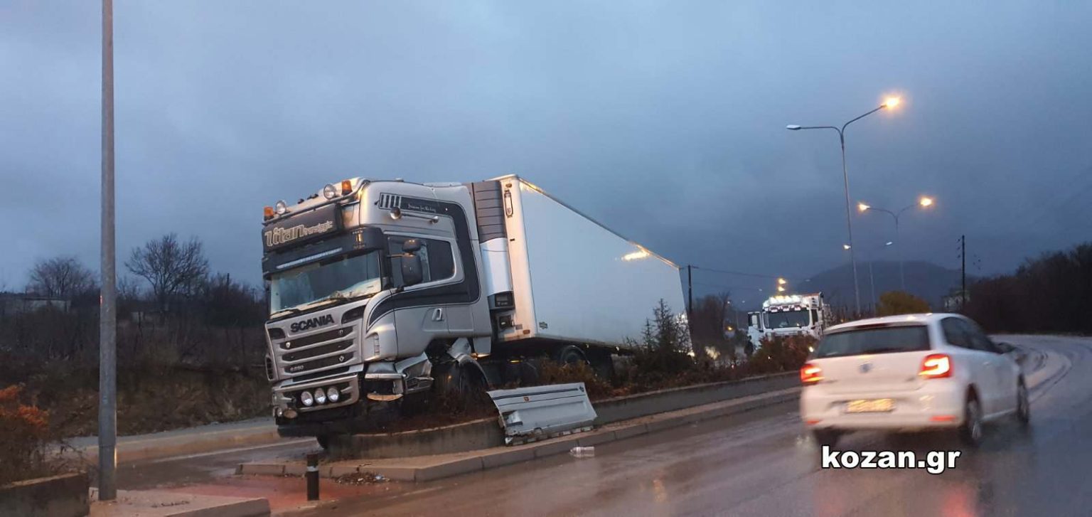 Τροχαίο σημειώθηκε τα ξημερώματα στην είσοδο της Κοζάνης. Σύμφωνα με πληροφορίες του kozan.gr, μια νταλίκα κάτω από αδιευκρίνιστες συνθήκες εξετράπη της πορείας της με αποτέλεσμα να πέσει πάνω στο διαχωριστικό διάζωμα.