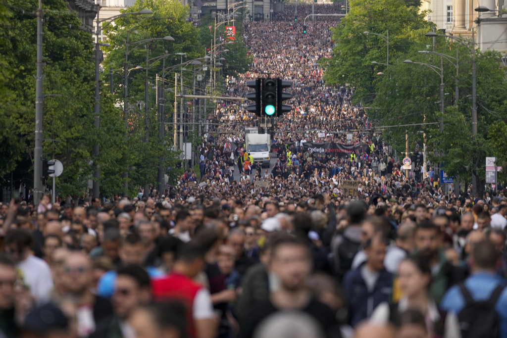 Δεκάδες χιλιάδες άνθρωποι διαδήλωσαν την Παρασκευή στην πρωτεύουσα της Σερβίας για τρίτη φορά μέσα σε ένα μήνα για να διαμαρτυρηθούν για τη διαχείριση της κρίσης από την κυβέρνηση μετά από δύο μαζικούς πυροβολισμούς στη βαλκανική χώρα νωρίτερα αυτό το μήνα. Οι αξιωματούχοι αγνόησαν τα αιτήματά τους και ισχυρίστηκαν ότι οι διαδηλωτές χειραγωγούνται από ξένες μυστικές υπηρεσίες.